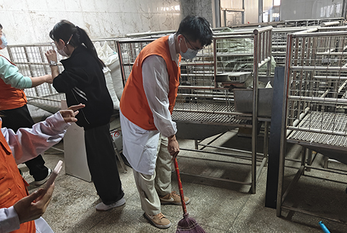 活动伊始,入党积极分子在动科楼大厅集合签到,由工作人员分发手套、拖把等清理工具。随后,丛慧楠说明本次活动旨在通过引导入党积极分子在亲身实践中感悟劳动意义,于实干中提升服务意识与责任担当。活动中,同学们分组进入禽畜饲养室开展清洁工作,有序擦拭墙面污渍、清扫地面残渣、拖净地面,认真完成清洁作业,在实践中践行责任。活动最后,同学们表明将在今后的学习和生活中继续发扬吃苦耐劳、主动担当的作风,积极向党组织靠拢,以实际行动争取早日成为一名合格的共产党员。