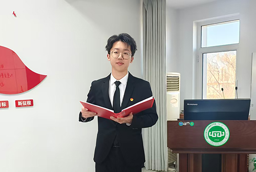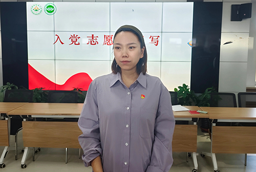 胡晓燕及参会老师为包伟豪、王科等5名新党员代表佩戴党徽。期间,包伟豪代表全体新发展党员发言,他表明宣誓不仅是仪式的完成,更是全新的起点,未来将坚持理论学习,锤炼过硬本领,在实践中砥砺党性修养,努力成为一名合格的共产党员。