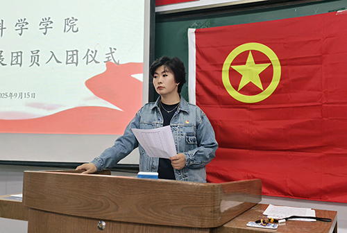 最后,其力格尔向全体新团员殷切寄语,希望同学们牢记共青团的光荣使命,自觉遵守团的章程,认真履行团员义务,将先进性融入日常点滴。同时,她鼓励同学们坚定理想信念,树立远大目标,充分发挥先锋模范作用,在青春的赛道上奋力奔跑。