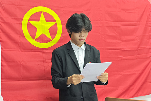 仪式在庄严的国歌声中拉开帷幕,现场肃穆庄重。随后,其力格尔宣读新团员名单,并对同学们正式加入中国共产主义青年团表示祝贺。其后,其力格尔为新团员颁发团员证并佩戴团徽。仪式过程中,优秀团员代表张立凯带领全体新团员宣誓,并分享成长感悟,鼓励新团员以高标准要求自己,在实践中找到青春的意义。新团员代表顾悦妍发言,她表明将以团员的标准严格要求自己,牢记入团初心,以实际行动诠释新时代共青团员的责任与风采,努力在成长路上不负韶华、不负期望。