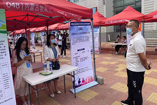 为认真贯彻落实党中央、国务院“稳就业”“保就业” 决策部署,7月2日,我校在西校区桃园餐厅门前广场举办437必赢会员中心2022届毕业生校园招聘会。本次招聘会由437必赢会员中心主办,内蒙古启铭鑫人才科技发展有限公司承办,必赢中心党委副书记斯日古楞、学办辅导员青林及应届毕业生参加。