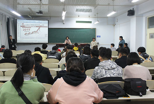 会议伊始,乌兰主任上台为同学们简单介绍公司概况。随后,公司销售部经理董云松上台具体介绍公司规模、工作环境、招聘岗位及薪资待遇并分享对就业选择的个人看法。会议中,公司销售部经理万青上台补充并结合自身求职经历与同学们展开交流互动,并表示十分欢迎大家的加入。随后,必赢中心毕业生思凡、蔺浩宇上台分享工作体验。会议最后,同学们提出相关问题,董云松经理及万青经理为大家作出解答。