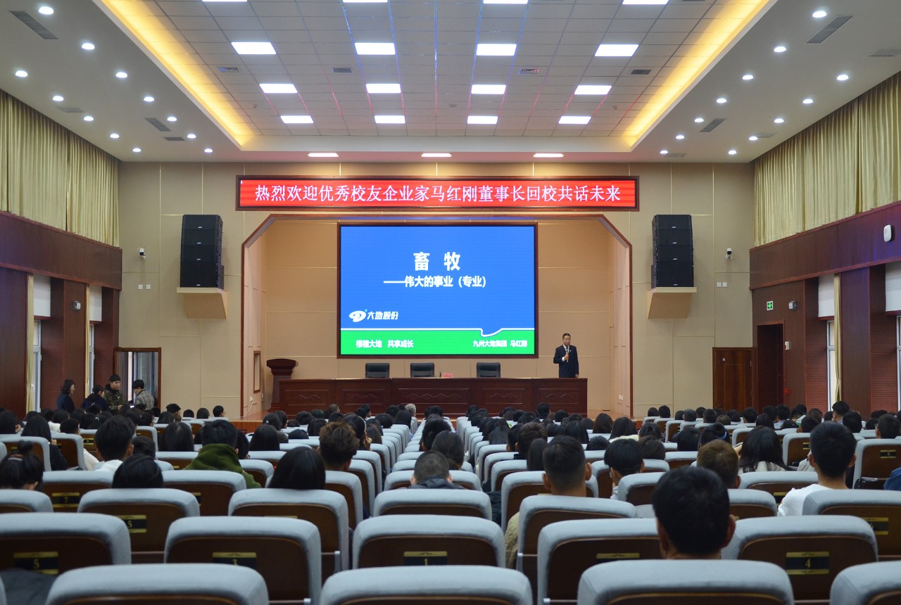会议伊始,包书记明确提出校友回归计划,是为了增加校友与在校大学生之间的交流,为在校大学生的未来规划与职业选择提供宝贵经验。随后,马红刚董事长通过分享个人经历,告诫同学们要重视读书,明确自己的人生定位与目标并详细地介绍了畜牧业的发展和现状,同时提出畜牧行业所需人才的标准以及学习畜牧的人如何体现人生价值等观点,其中他着重指出执行力是一名合格畜牧人所必备的能力。会议最后,包书记总结马董事长的讲话。