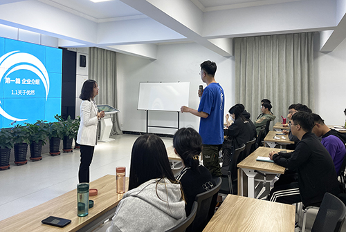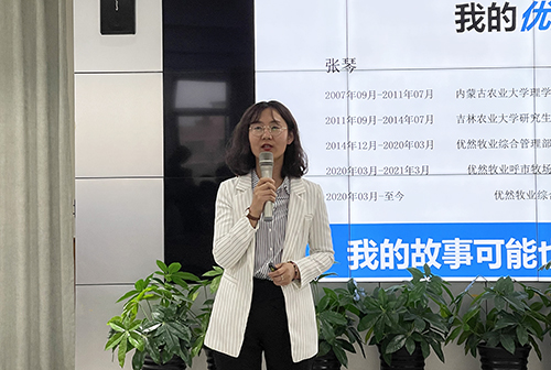 会议伊始,招聘负责人张琴组织同学们观看内蒙古优然牧业有限责任公司宣传短片,同学们对公司有了初步了解。随后,张琴从国内规模、企业文化、行业资源、行业地位、技术优势、产能布局、发展历程、发展态势等方面对公司进行详细介绍。会议期间,张琴围绕着行业的选择、产业链人才培养和管理、职位的晋升空间和成长机制、薪资待遇、员工福利等方面为同学们讲解职业发展平台,并表示公司有着现代化科学运营管理,能够为同学们提供优越的工作条件。会议最后,招聘负责人张琴为同学们介绍公司的人才及岗位需求,并为同学们解答疑惑。