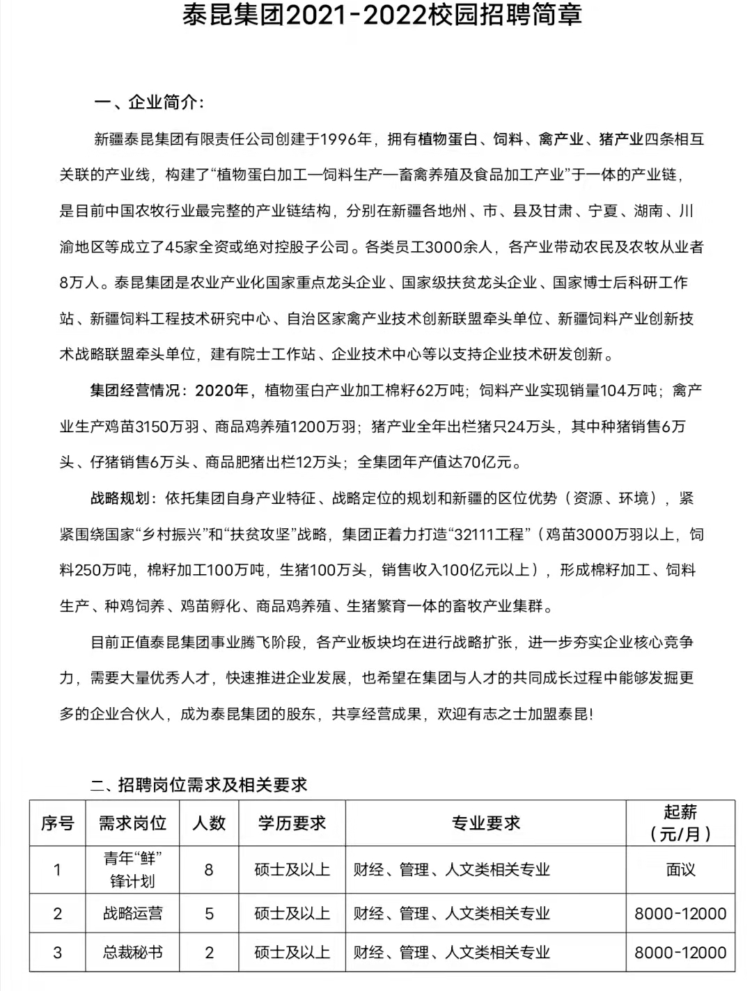 下一篇:【招生就业】天津通威饲料有限公司招聘简章