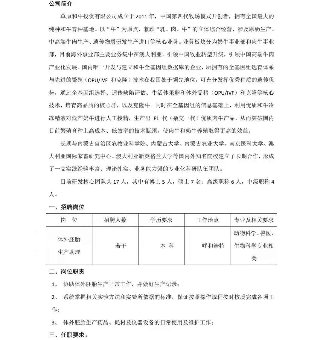 上一篇:【招生就业】内蒙古华希生物科技有限公司招聘简章