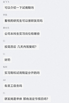 会议伊始,刘莹姣对华希生物企业的产业结构、企业发展、战略目标等方面进行简单介绍。期间,刘莹姣为同学们介绍了企业不同岗位的薪资福利和岗位晋升规则,周继军为同学们讲述了企业研发出的产品的特点及优势,并表明在不远的未来公司还会上市更多有竞争力的产品,欢迎同学们加入华希生物科技有限公司,共同见证企业的成长。会议最后,同学们就公司的发展前景、个人的职业发展以及公司的培养体系等方面进行提问,刘莹姣和段跃强针对每个问题进行细致的回答。
