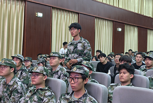 期间,胡晓燕作动员讲话,她围绕军容风纪、参训纪律等核心内容作出明确要求,鼓励同学们自立自强,在军训中强化责任意识、涵养担当精神,并着重阐明了军训的重要意义,希望同学们以饱满积极的心态投入其中,用拼搏与汗水书写这段难忘的迷彩青春。最后,同学们提出问题,胡晓燕为其解答。