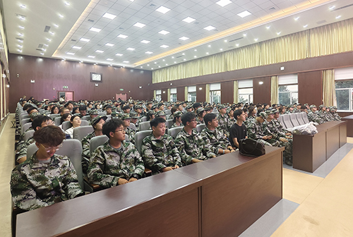 随着庄严的国歌奏响,全体师生肃立行注目礼,军训动员大会正式拉开帷幕。