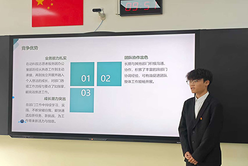 竞选人依次上台,分别从个人简介、工作总结、竞选优势等方面展开介绍,详细汇报过去一年的工作成果,阐述对志愿者团及竞选岗位的理解,并结合团队现存实际与志愿服务需求,提出未来规划,充分展现出推动志愿者团持续发展的清晰思路与积极愿景。答辩中,其力格尔针对竞选者发言提问,竞选者围绕岗位职能、团队协作、活动创新等核心回应,充分彰显对岗位的理解与履职准备。最后,其力格尔对本次答辩进行总结,她梳理了答辩中的亮点与待改进之处,明确志愿者团未来需聚焦的服务方向与团队建设重点,同时寄语全体成员,希望竞选者们以本次换届为新起点,秉持志愿精神,凝聚团队力量,为学院志愿服务事业注入更多活力。