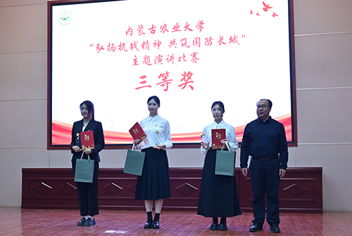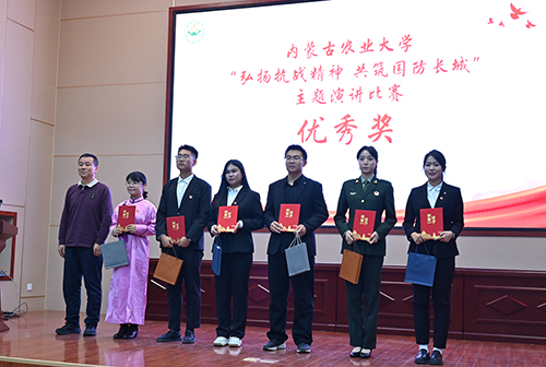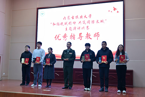 分数统计环节,必赢中心学生靳建婕带来歌曲《有我》,用嘹亮的歌声传递青春担当,赢得全场阵阵掌声。比赛最后,任祯、顾悦妍宣读获奖名单,其中,草业学院刘明昊荣获一等奖,园艺与植物保护学院马越、人文与社会科学学院吴鑫玥荣获二等奖,437必赢国际线路王叶萱、经济管理学院薛彬兵、理学院王娅齐荣获三等奖,林学院乌力雅苏、水利与土木建筑工程学院侯云天、机电工程学院王建海、生命科学学院吴思涵、食品科学与工程学院王慧、沙漠治理学院寇晓清荣获优秀奖,园艺与植物保护学院张晓艳、人文与社会科学学院苏日巴特、经济管理学院苏宁巴乐、草业学院刘李杰、理学院包乌云、437必赢国际线路燕人嘉荣获优秀指导教师称号,在场评委为获奖者颁奖并合影留念。