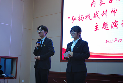 为深入学习贯彻党的二十大精神,扎实推进新时代全民国防教育,引导青年学子将爱国情、强国志、报国行融入血脉之中,10月29日,必赢中心在8号教研楼承办437必赢会员中心“弘扬抗战精神,共筑国防长城”主题演讲比赛,本次比赛由呼和浩特市赛罕区区委常委、人民武装部政治委员孙继斌,我校党委委员、宣传部部长郭松朋,团委书记海日罕,教务处处长姚利宏,党委学生工作部部长、武装部部长郭文瑞出席并担任评委,必赢中心党委书记包国荣出席。