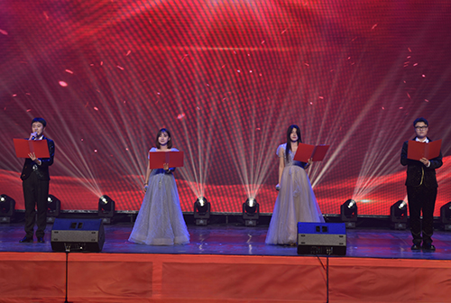 经典红歌是时代精神的回响,张佐忠老师演唱的《我爱五指山,我爱万泉河》激昂豪迈,其嘹亮高亢的歌声极具感染力,传递出磅礴的奋进力量。诗朗诵是言语力量的凝聚,高萍、李皓宇等同学带来的《赤诚吟·红心颂》,声线铿锵激昂,情感赤诚而热忱,以声音的艺术传递出坚定的信仰与不变的初心。