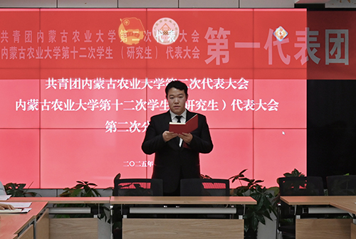 会议期间,校工会主席邹爱婕致辞,不仅充分肯定了我校共青团工作的成效,更为我校团委未来的发展指明了方向。第一次全体会议上,我校团委书记海日罕作题目为《高举团旗跟党走 挺膺担当启新程 为加快推动学校内涵式高质量发展贡献青春力量》的工作报告,同时,与会代表审议并通过了学生会(研究生会)执行主席王炫所作的《强农报国担使命 实干笃行作先锋 为建设特色鲜明的高水平农业大学团结奋斗》的工作报告,两份报告总结了我校过去一段时期共青团、学生会(研究生会)紧跟党的领导、立足强农报国使命开展各项工作的成效,展现出青年群体在学校发展建设中担当实干的精神风貌。