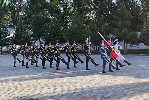 左合君宣读军训团组织机构及编组方案。随后,陈永胜为军训团授旗。