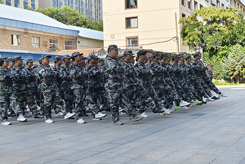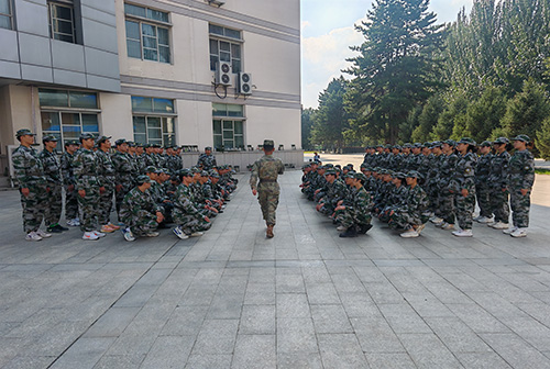 踢腿如尺量,落脚似鼓响,动科学子的队列笔直如线。汗水顺着脸颊滑落,浸湿了迷彩,却浇不灭眼里的光。微风掀起衣角,他们的步伐始终坚定向前。