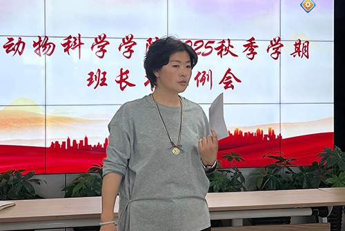其力格尔阐明同学们要积极学习习近平文化思想大讲堂,将其融入实践感悟,明确方向,以思想武装头脑,展现新作为,并要求各班开展“暑假社会实践归来话感受分享”主题班会,鼓励同学们交流实习经历,相互学习借鉴,提升其综合素质与专业能力。其后,燕人嘉阐明班委作为学院与同学之间沟通的桥梁,应精准掌握班级实时情况并向学院报备,做到及时、高效、准确。同时,他强调各班要做好国庆假期安全工作,及时掌握班级同学假期去向和动态,并提醒同学们时刻牢记安全意识,共同营造安全、和谐的校园环境。随后,马晓莺对入党流程进行详细阐述,并要求班委准确传达消息,确保全体同学均能及时且完整地知悉各项要求