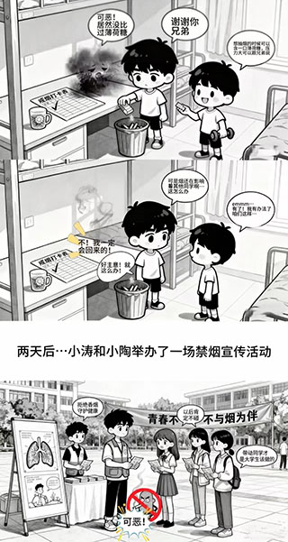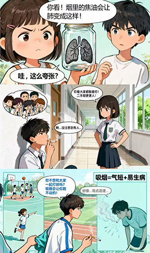 为引导必赢中心学子树立健康生活理念,涵养文明素养,必赢中心特举办“无烟青春,健康同行”禁烟宣传主题活动。同学们以漫画为媒,将对烟草危害的深刻认知与对健康未来的美好期许融入画面,充分彰显了必赢中心学子强烈的社会责任感与深厚的人文关怀,现将优秀作品予以展示